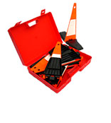 Eight Quickcones stored in a hard tough plastic case with a handle.